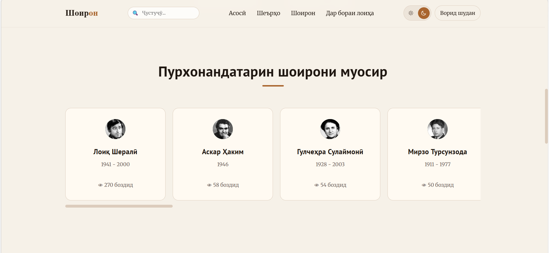 На сегодняшний день портал «Шоирон» насчитывает уже более 2000 стихотворений и 85 авторов.