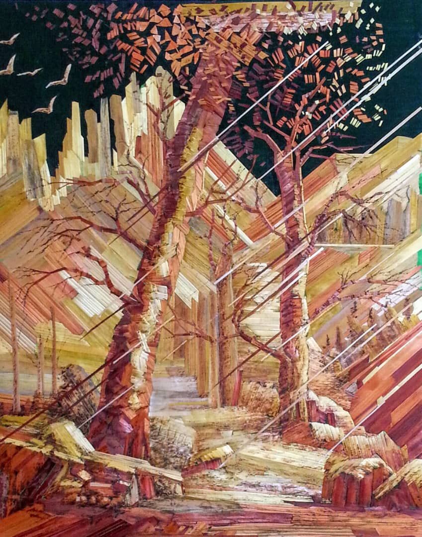В его копилке множество автопортретов, пейзажей, натюрмортов. Но свои нынешние картины он больше не рисует кистью, а изготавливает их из стеблей злаковых культур.