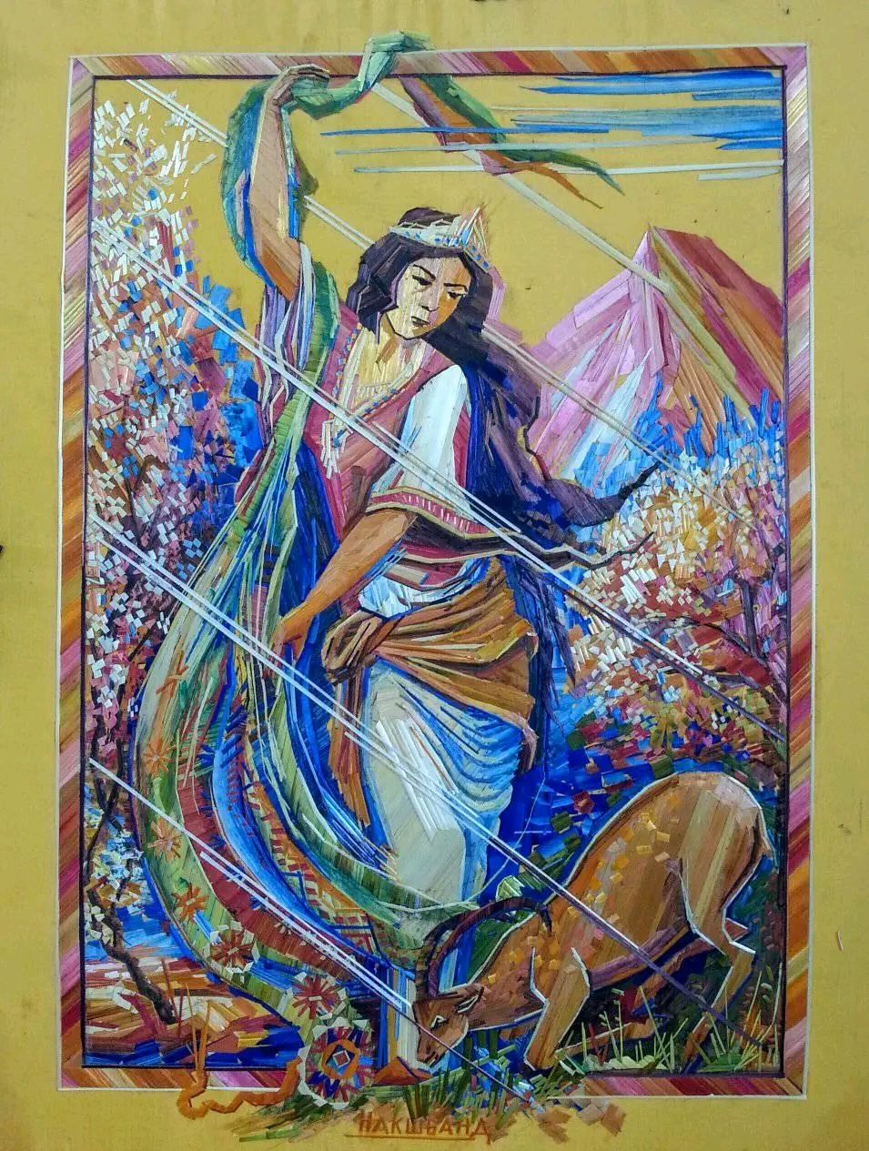 Это талантливый художник из Пенджикента Зиёвиддин Мирзоев, который через 30 лет вновь стал рисовать картины, но на этот раз, не красками, а с помощью соломы.