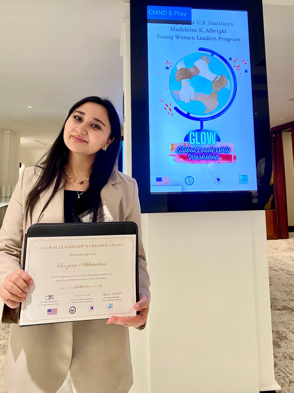 На третьем курсе она узнала о программе SUSI (Studies of United Institutes for Women Leaders) от посольства США.