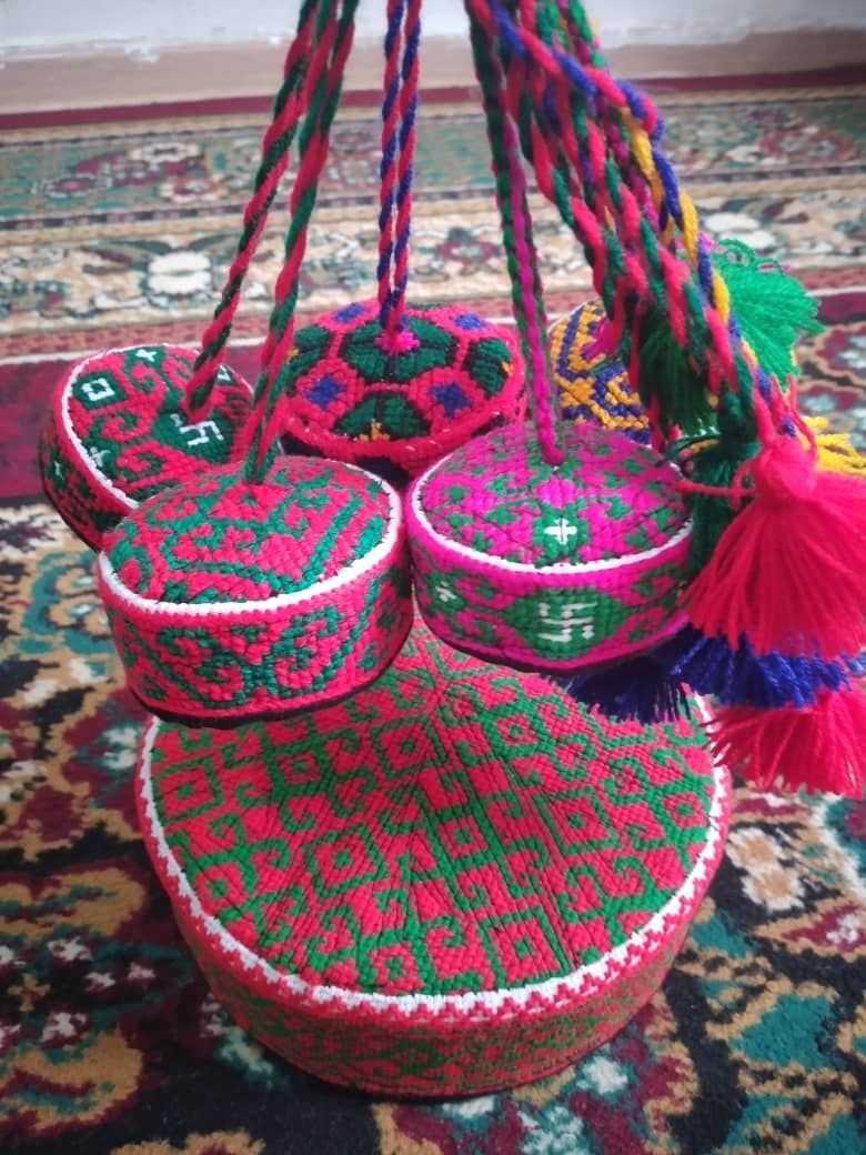 Нижняя часть чичбога украшается обычно бусинками и помпончиками из той же самой пряжи. Это украшение широко используют невесты на свадьбах, девушки, которые наряжаются на Навруз и другие национальные праздники», — объясняет мастерица.