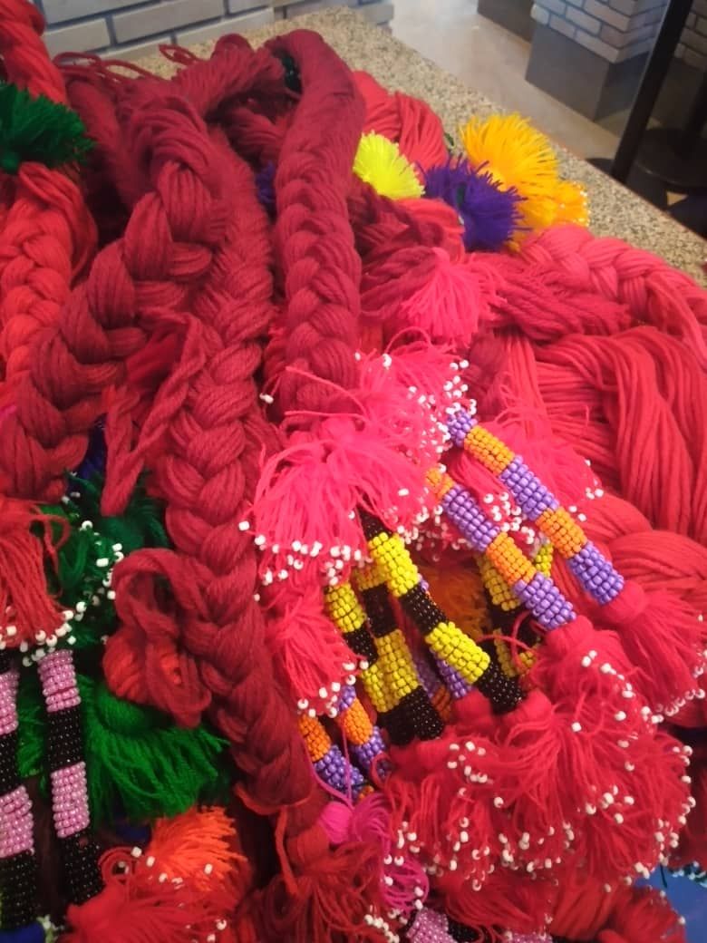 «Чичбоги в основном, изготавливаются из овечьей шерсти, окрашенной в красный цвет. Одну веревочку разделяют на три части (ветви), чтобы было легче вплести их в тугие косы.