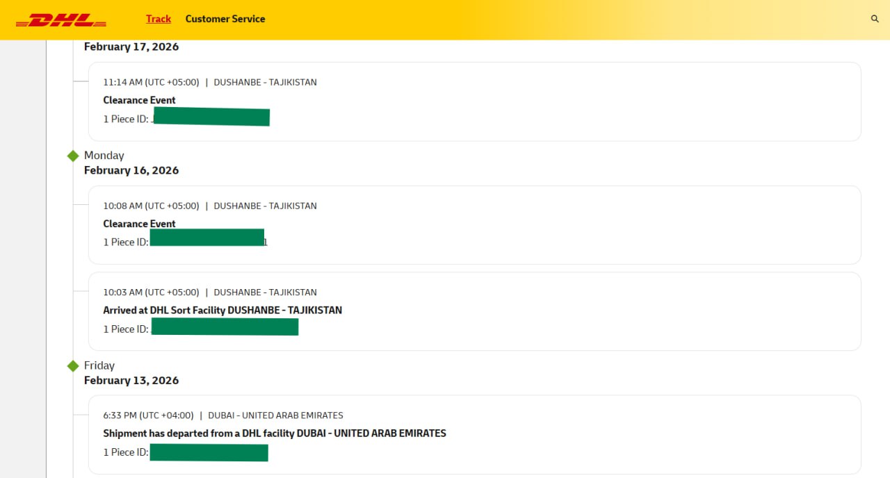По номеру отслеживания, который получила Махина, посылка находится на таможенном оформлении в Душанбе с 16 февраля.