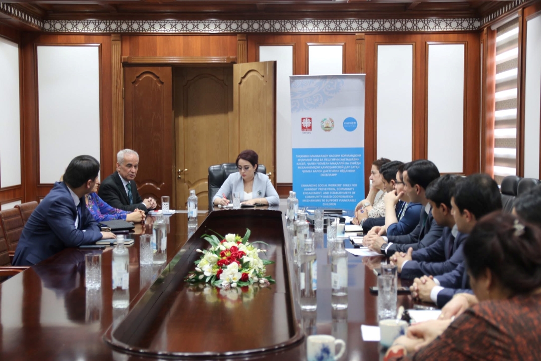 Лоиҳаи “Таҳкими малакаҳои касбии кормандони иҷтимоӣ оид ба пешгирии хасташавии касбӣ, ҷалби ҷомеаи маҳаллӣ ва бунёди механизмҳои ҳамоҳангсозӣ дар сатҳи ҷомеа барои дастгирии кӯдакони осебпазир” бо дастгирии Вазорати тандурустӣ ва ҳифзи иҷтимоии аҳолии Ҷумҳурии Тоҷикистон, аз тарафи Филиали Ассотсиатсияи Каритас Олмон дар Тоҷикистон бо маблағгузории Иттиҳоди Аврупо ва Хазинаи кӯдакони СММ (ЮНИСЕФ дар Тоҷикистон) амалӣ гардидааст.