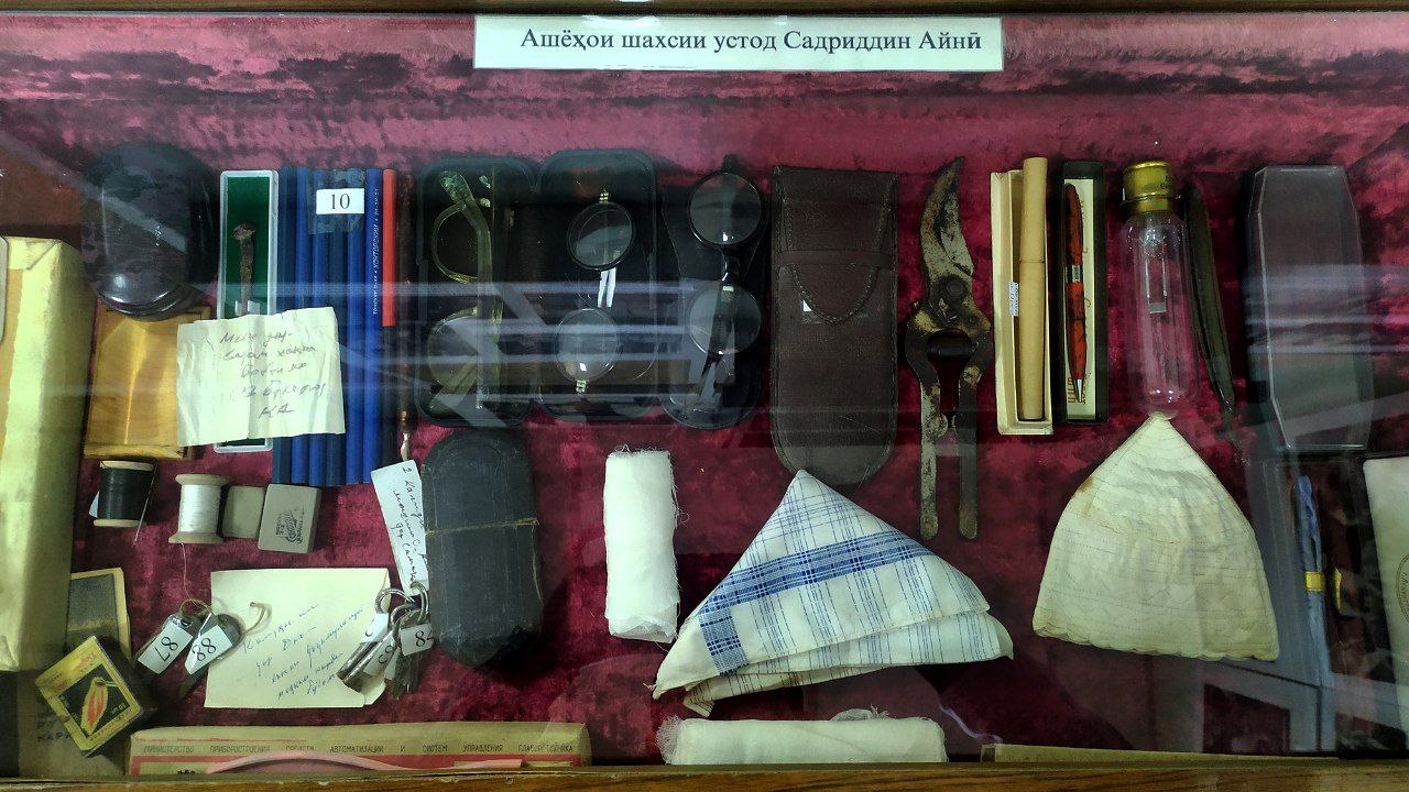 Чойник ва пиёлаи шахсан аз он истифода мебурдаи Садриддин Айнӣ низ ин ҷо маҳфуз аст.