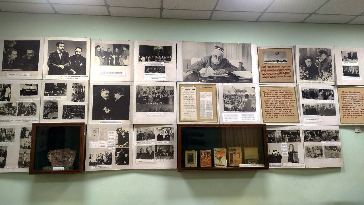 Дар ҳуҷраи дигар экспонатҳои солҳои 20-50, аз ҷумла китоби “Намунаи адабиёти тоҷик”, ҷоизаҳо, дипломи доктори илм, мизе, ки дар паси он дар вазифаи президенти Академияи илмҳои Тоҷикистон кор кардааст ва ғайра ҷамъ оварда шудаанд.