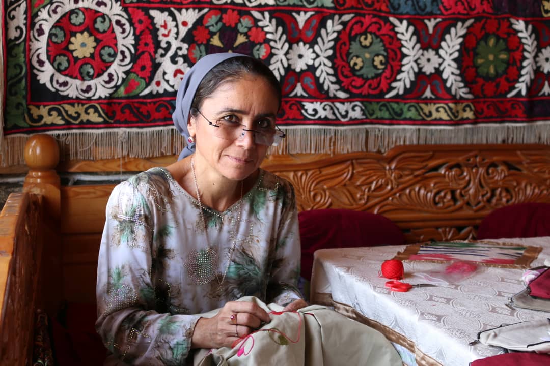 “Гулдӯзии нахустинамро дар ёд дорам, он ҷойинамоз буд. Вақте кор бо сӯзану риштаҳоро хуб ёд гирифтам, рӯйҷо, болин ва дигар чизҳои ороиширо гулдӯзӣ мекардам. Он замон ва имрӯз низ гулдӯзиҳоро бештар дар тӯйҳо истифода мебаранд”, – шарҳ дод бонуи ҳунарманд.